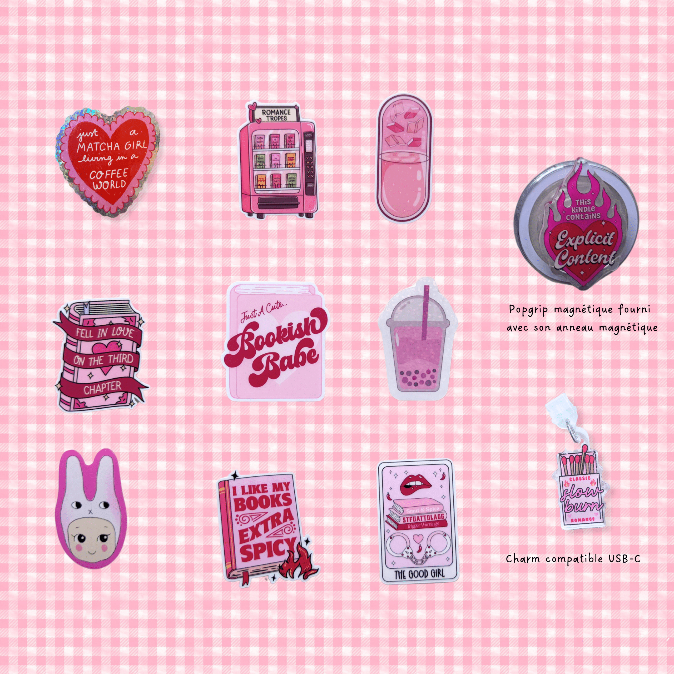 9 stickers aux tons roses, parfaits pour décorer ta liseuse