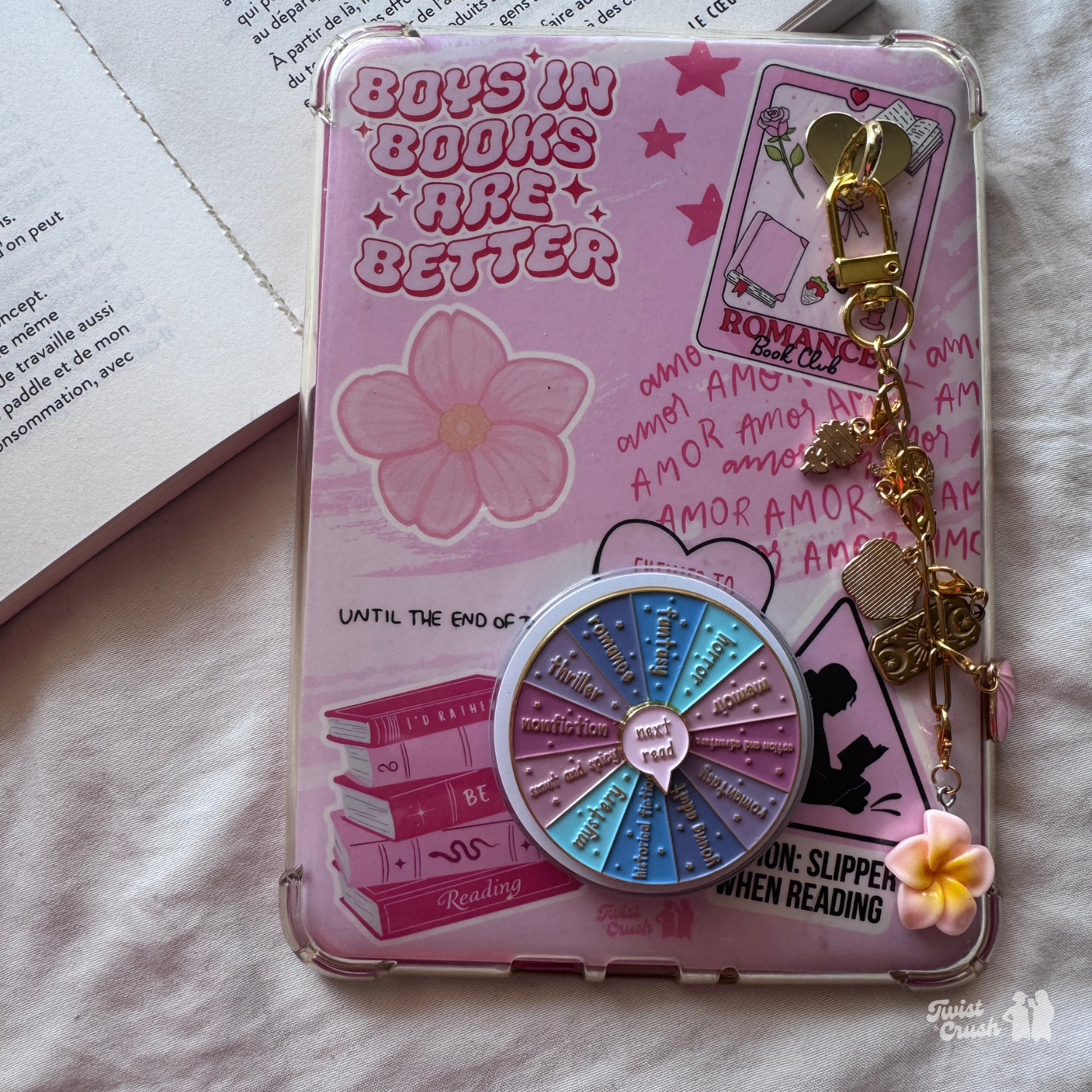 Rendez vos moments de lecture encore plus confortables avec cette poignée magnétique rose pour tenir confortablement votre liseuse. Ergonomique, légère et esthétique, elle permet de tenir votre liseuse facilement tout en affichant votre genre littéraire préféré 📚✨.