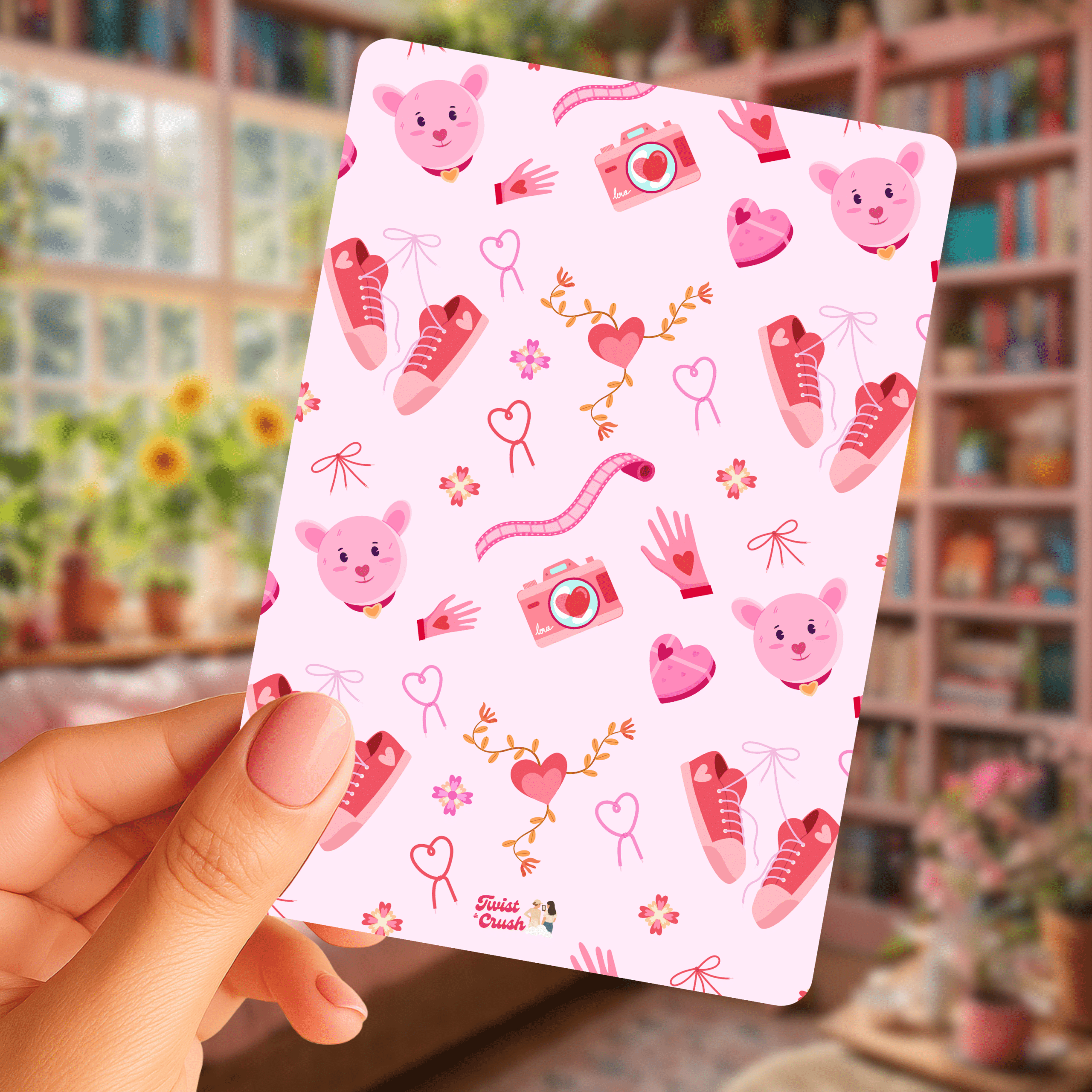 Un insert au style tendre et réconfortant, mêlant petits symboles du quotidien et touches romantiques. Un univers doux et joyeux, parfait pour accompagner tes lectures feel-good, romance ou cosy.