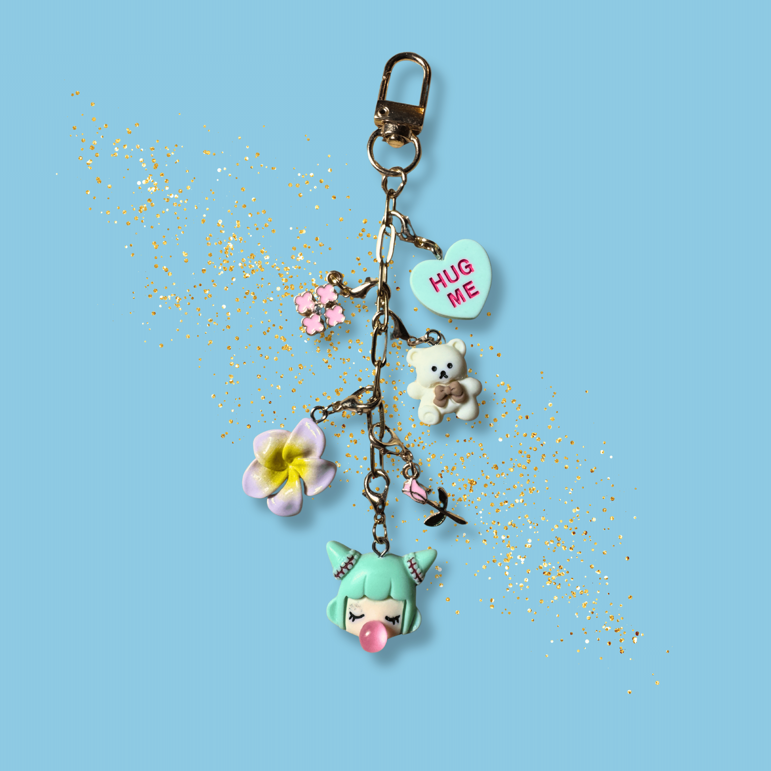 La chaîne, le mousqueton et l’accroche à coller en forme de cœur sont de couleur or, pour une finition élégante et lumineuse ✨