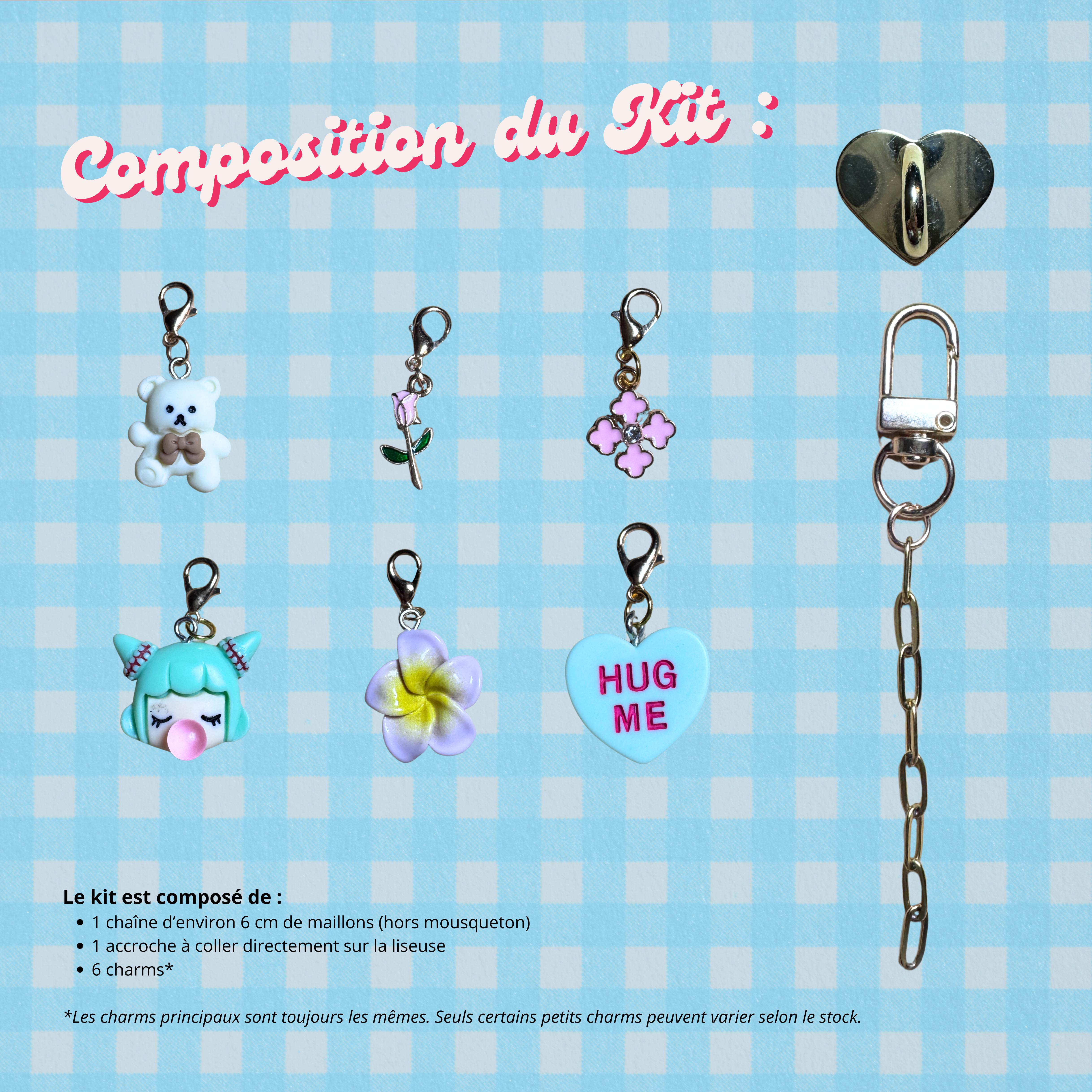Les charms principaux restent identiques, seuls certains petits charms peuvent varier selon le stock ✨